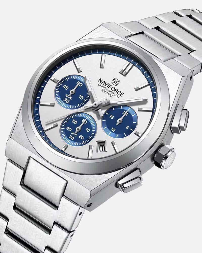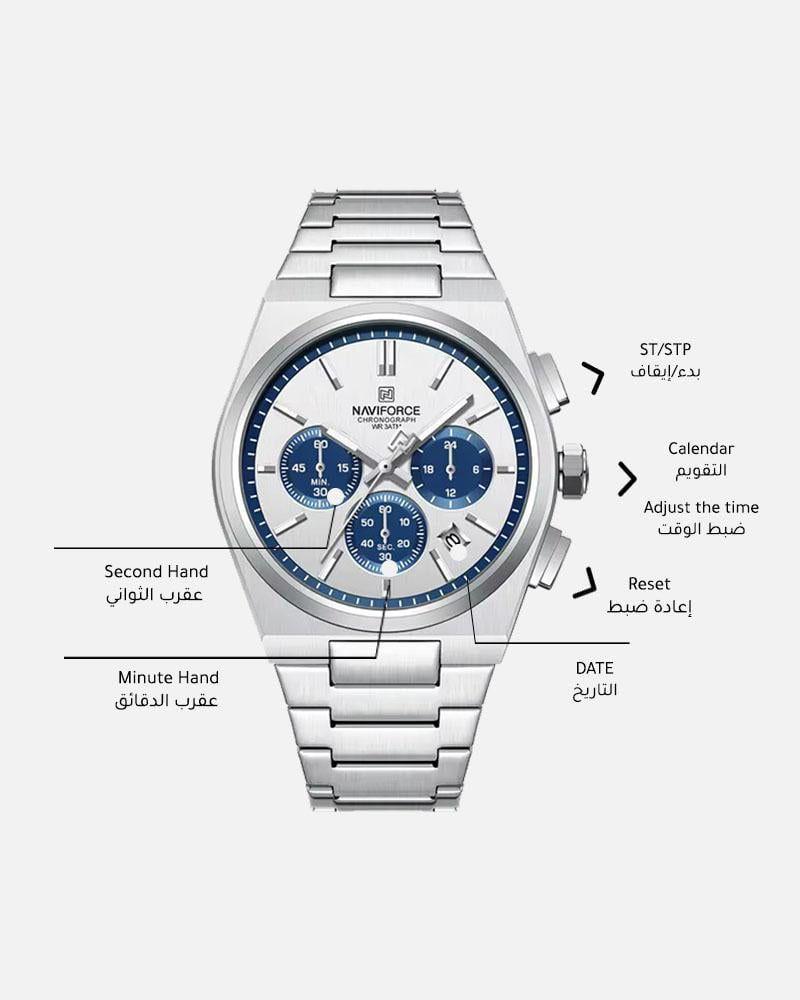 ساعة رجالية كرونوغراف فضي دوائر أزرق