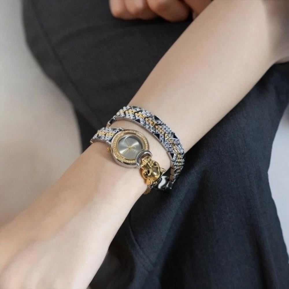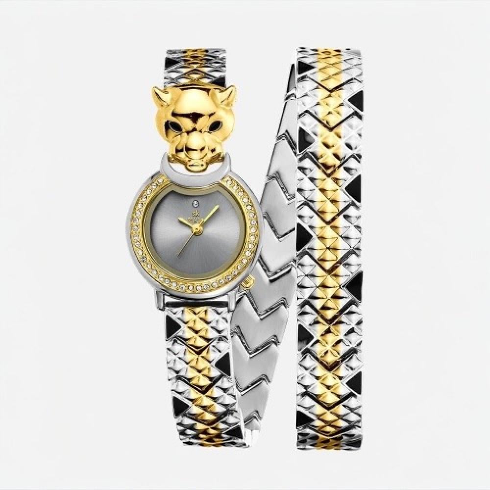 ساعة نسائية كارتير النمر العربي استيل لفتين  لونين ميناء رمادي