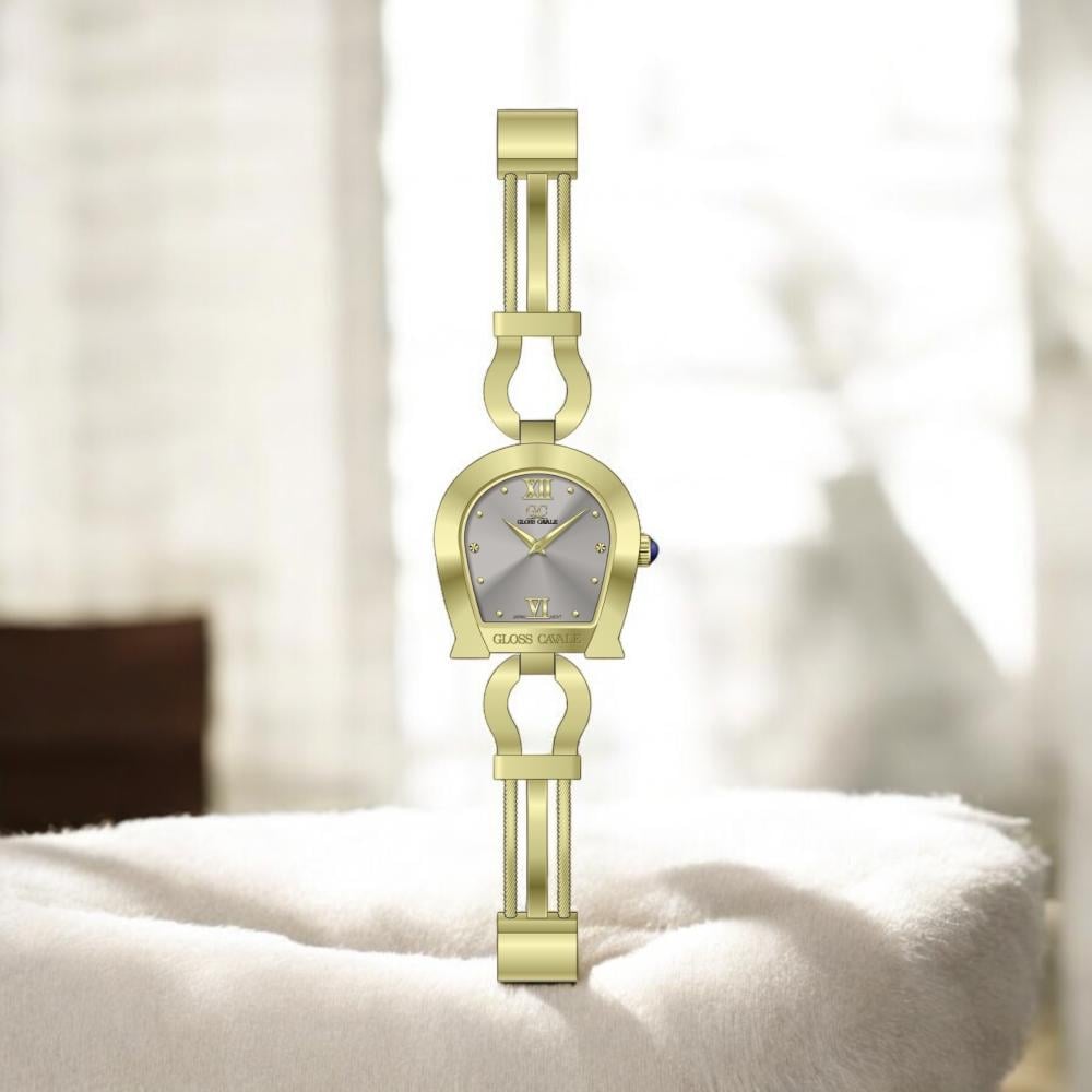 ساعة نسائية موديل اقنر ذهبي ميناء رمادي