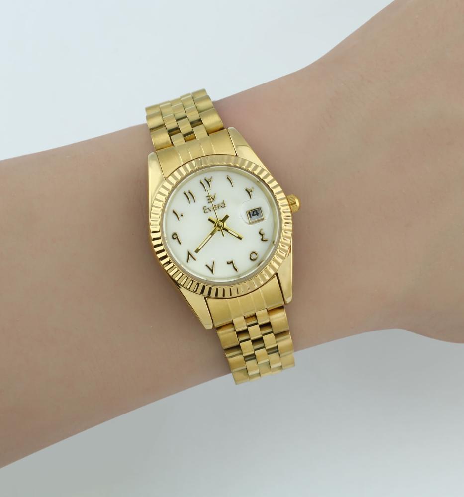 ساعة نسائية موديل رولكس ارقام عربية ذهبي ميناء صدف
