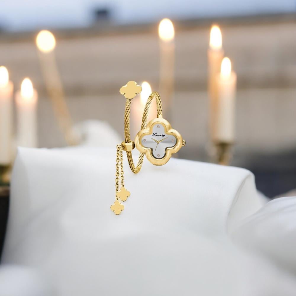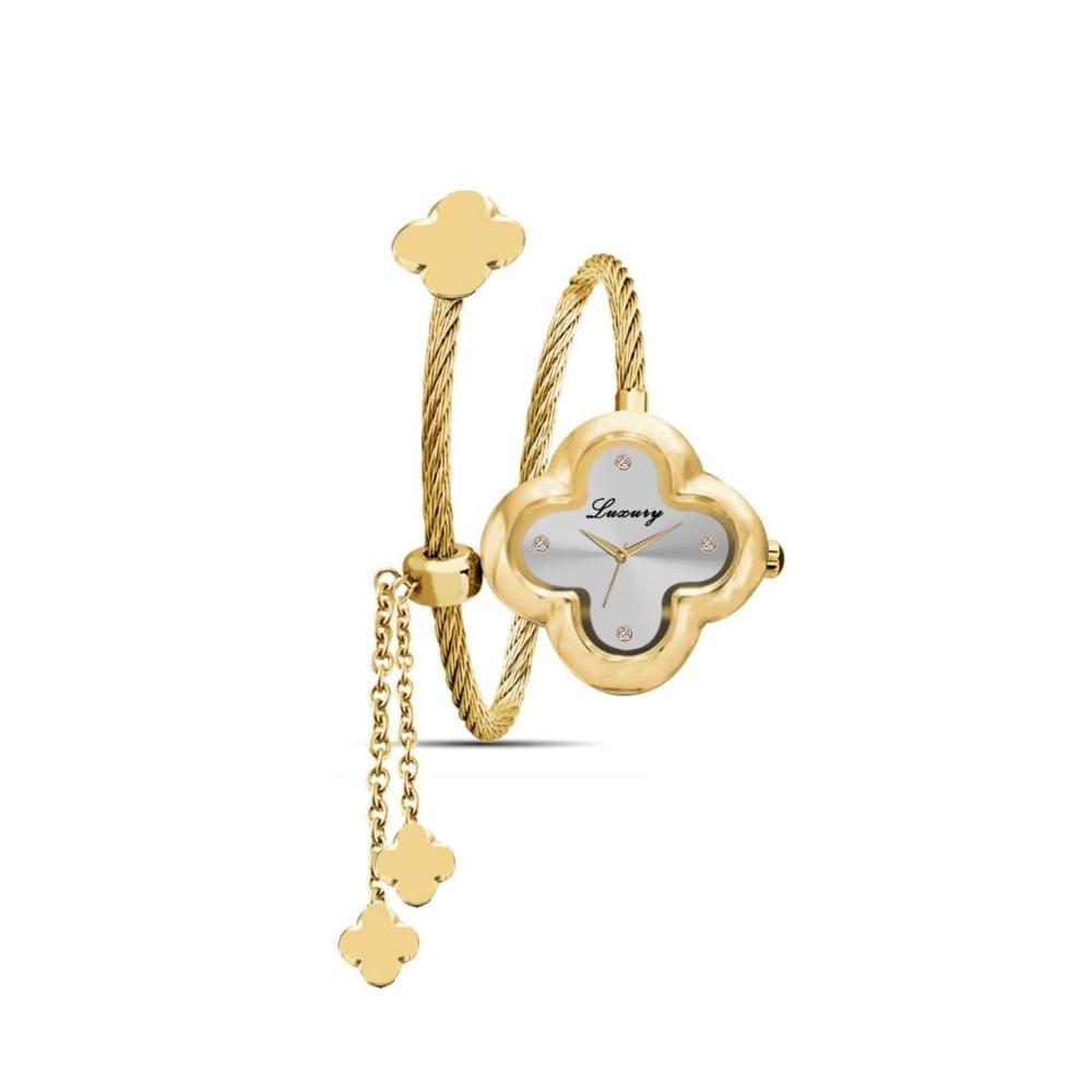 ساعة نسائية موديل فان كليف الاسوارء ذهبي ميناء فضي