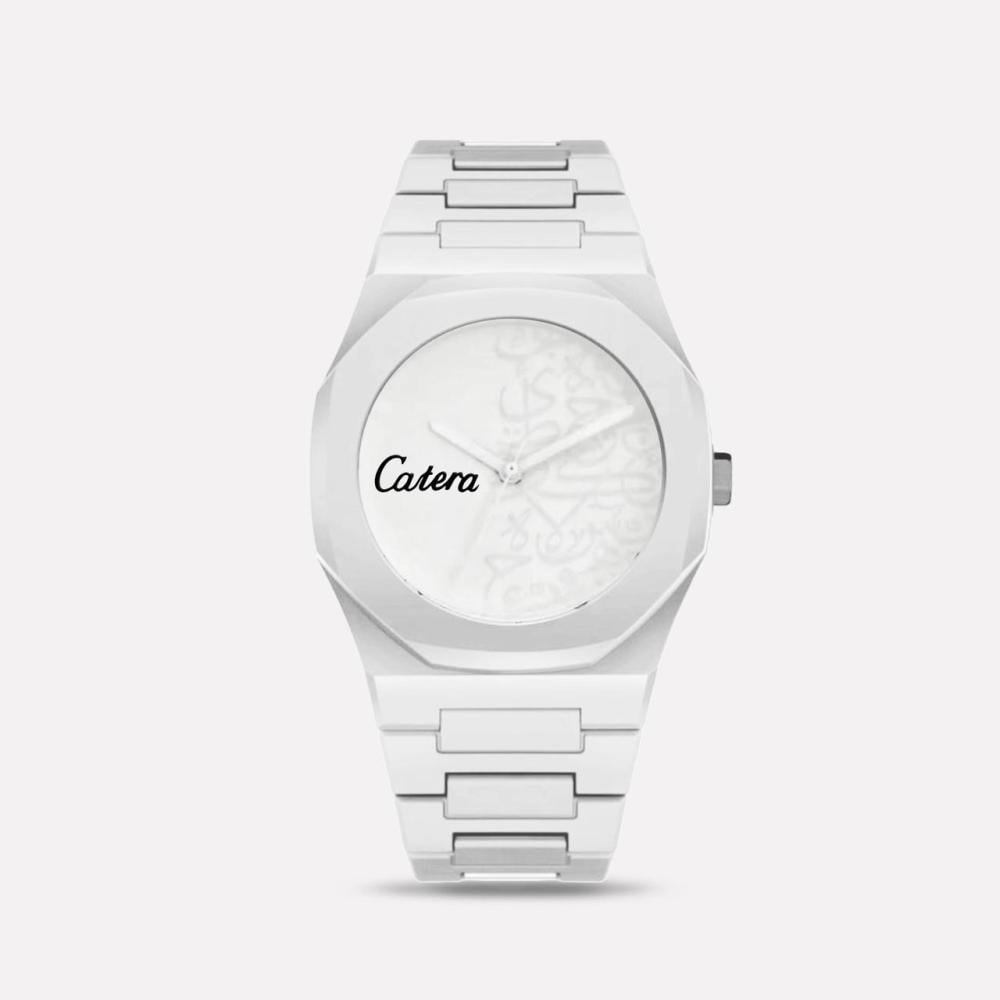 ساعه رجاليه بسير من الكاربون الخفيفه ابيض كتابه عربيه