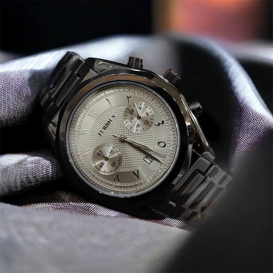 ساعه رجاليه كرنوغراف ستيل أسود أرقام عربيه