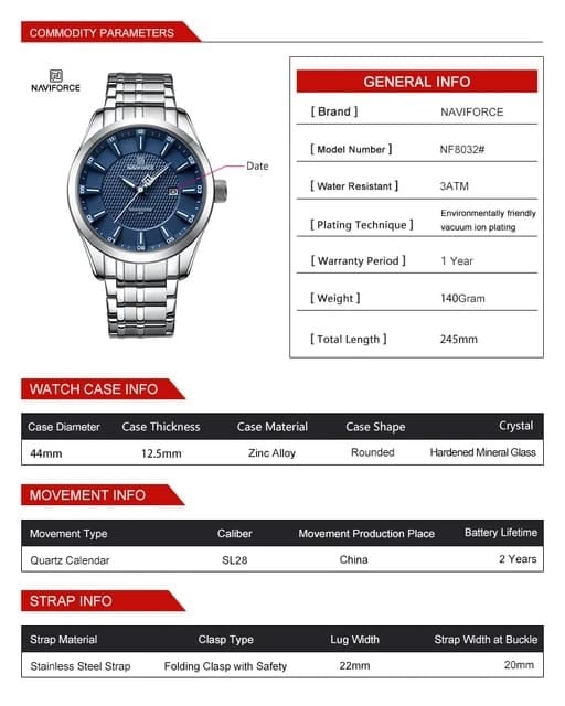 ساعه رجاليه ماركه نيفي فورس رجالي فضي ميناء ازرق